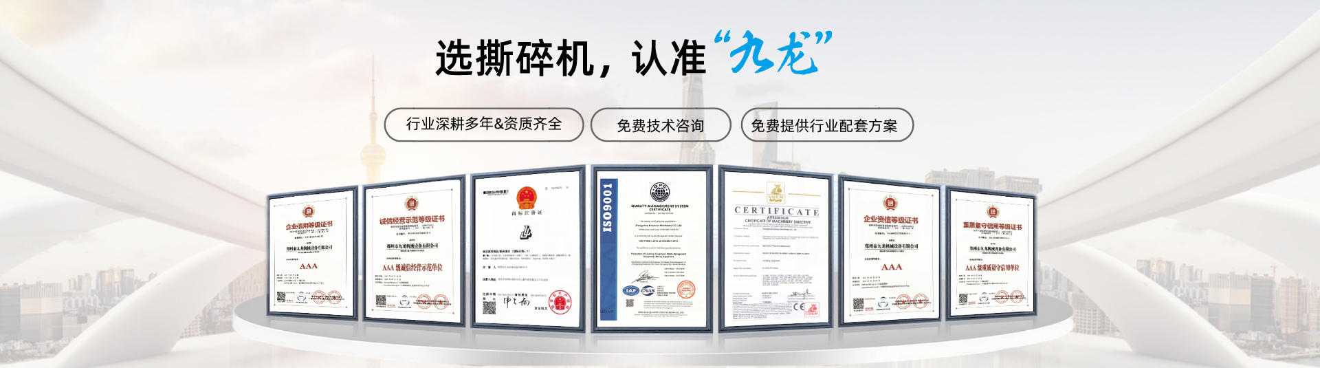 九龙机械是集科技研制、生产制造、市场开发、商贸洽谈,从事撕碎行业和技术进出口业务于一体的专业性实体生产企业。九龙公司已通过ISO9001质量管理体系认证。公司主要生产大型稻草捆撕碎机、大件垃圾破碎机、生活垃圾破碎机、双轴撕碎机、千亿平台、轮胎粉碎设备等系列大、中型撕碎设备的企业,九龙公司坚持“质量兴业”的创业思想,奉行“用户满意”的服务宗旨,以“诚实信用,实事求是“为经营之本。九龙公司始终坚持以质量求生存,以创新求发展,并遵循“对每一道工序负责,对每一台产品负责,对每一位用户负责的工作态度,九龙全体工作人员竭诚为您服务。经营理念——以客户...
